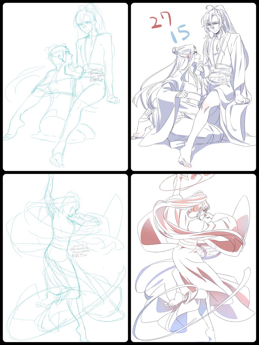 43 261 ざわさん(@ chikocham_)からの宿題✍️ 夏のセーラー服にょたゆり忘羨🎐らくがき 23/07/25 03:36