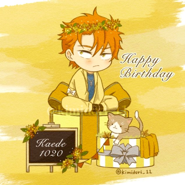金城楓くんお誕生日おめでとう💛🧡素直じゃないけど思いやりが深くて優しい君が大好き🍁一緒に泳げて良かった…🏊♂️🥇今日は皆にお祝いされてるかな🎉(渚企画パーティー)楓BDアクスタ欲しい〜の気持ちを込めて描きました🎨金木犀の花冠🌼とけもの🐈 #金城楓生誕祭2022 #金城楓誕生祭2022 #Free_Birthday