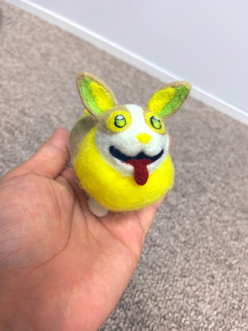 12 42 手乗りワンパチ出来ましたああああああああああ!!目がとても難しかった😂もっと可愛く出来たらよかったんだけども...スキルの限界でした...首のもふもふはあえて刺し固めないでモフっと仕上げてます☺️ #ポケモン刺せるかな #羊毛フェルト #ワンパチ #ポケモン #ポケモン剣盾 19/07/14 20:52