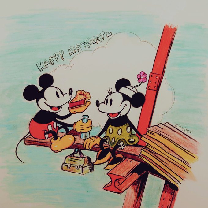 今日はミッキーとミニーの 誕生日✨✨ おめでとう(*´˘`*)🎂⊂(´˘`๑)" ランド行きたい!! #ハッピーバースデーミッキー #ハッピーバースデーミニー #ハートでつながるキャンペーン #色鉛筆画