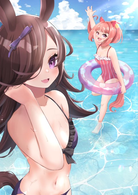 水着ウラライス🏖 #ハルウララ #ライスシャワー #ウマ娘
