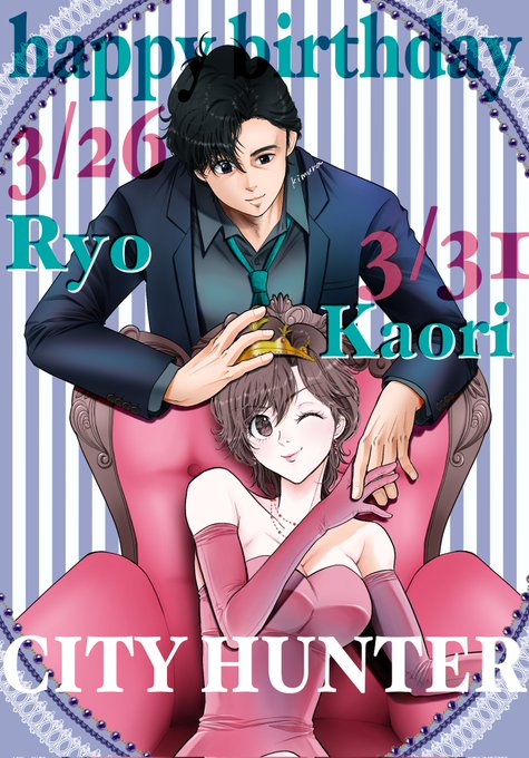 獠ちゃん(3/26) 香ちゃん(3/31) お誕生日おめでとう(〃´▽`)💕 #イラスト #シティーハンター #CITYHUNTER 1枚ずつ描けなくてゴメンナサイm(._.)m