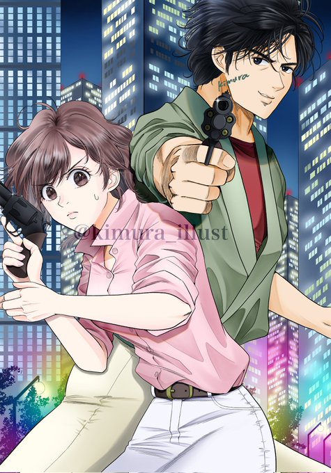推しを描いている時間がいちばん幸せ😍💕 獠ちゃん香ちゃん大好き🥰💗 #イラスト #シティーハンター …未だに慣れないクリスタで描きました。。