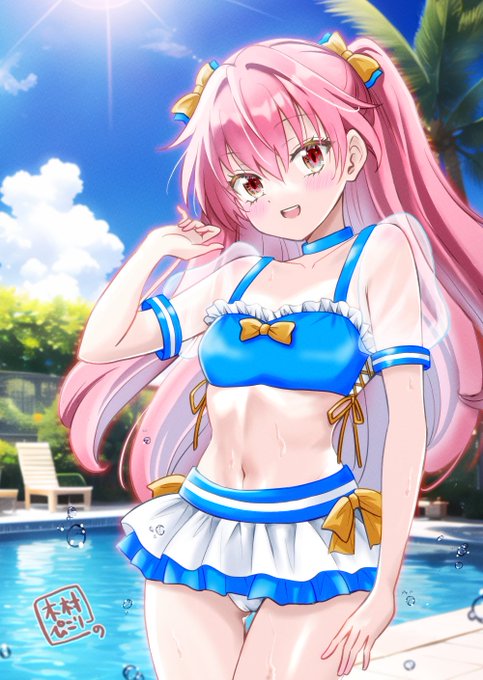 なんか微妙に暑くなって来ましたね。こちらは去年の凛音の水着絵(目がデカいな👀) 今年はもう少しだけ大人っぽくしつつ、ロリ要素は残そうとギリギリのラインを攻めているつもりなんだけど、私の趣味を詰め込むとどうも水着と言うよりはコスプレっぽくなる💦オイ もうちょっとデザイン考えてみよう…