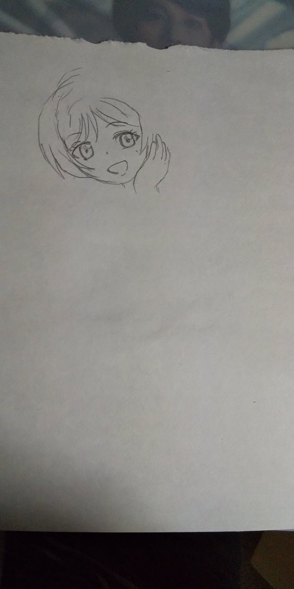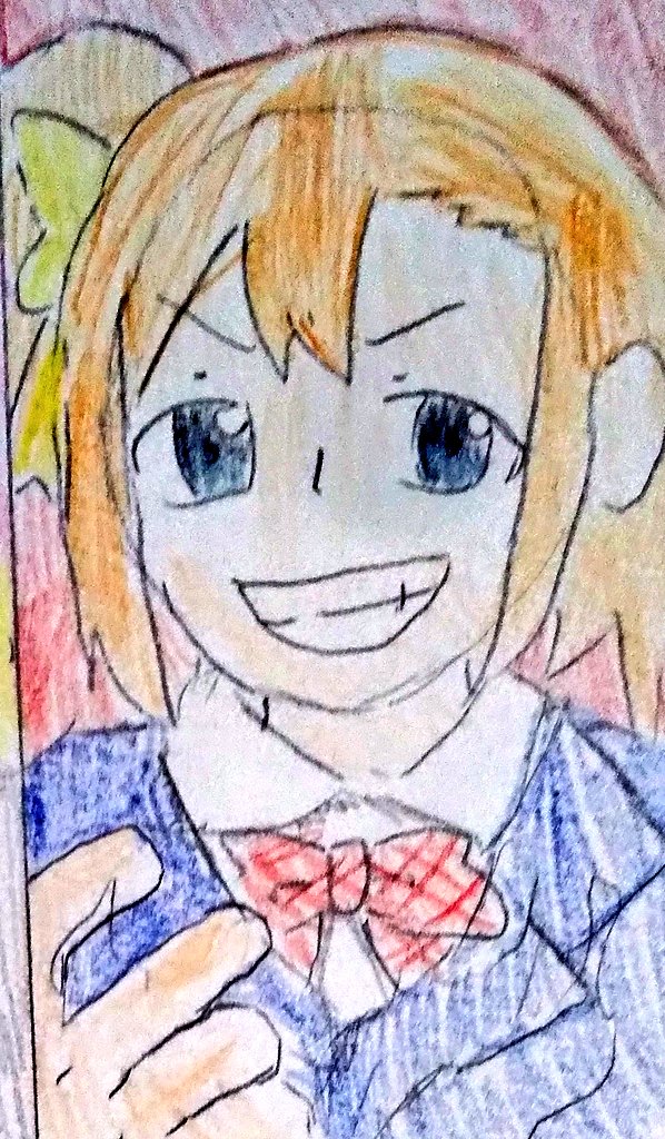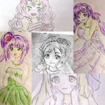 #このタグを見た人はラフ画とその完成絵を見せる 顔の輪郭(ただの楕円)→目→髪の順に描いてから色塗り、4Bで実線を書く。(前はボールペン描いてから下書き消してたけど)