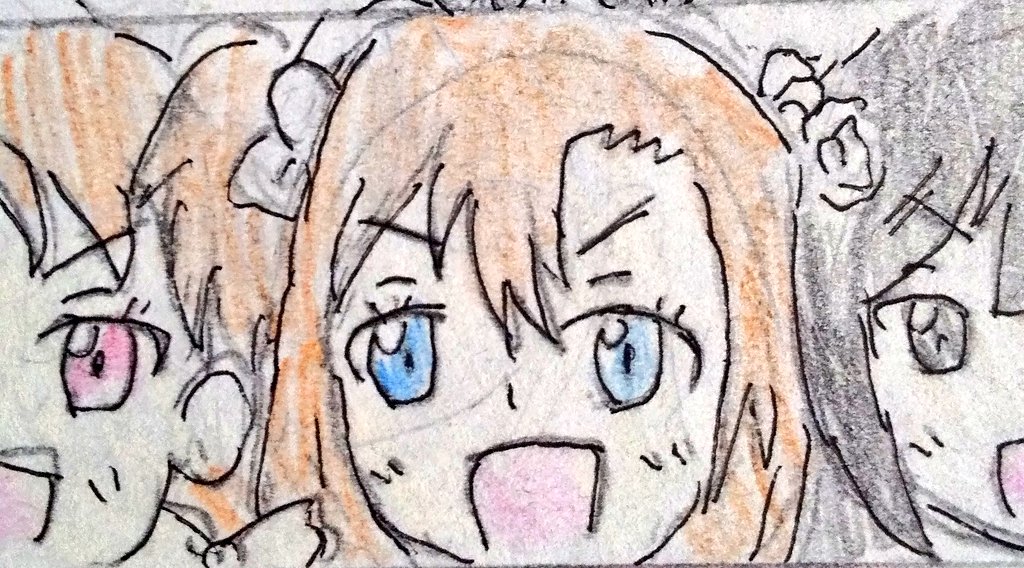 2 5 #このタグを見た人はラフ画とその完成絵を見せる 顔の輪郭(ただの楕円)→目→髪の順に描いてから色塗り、4Bで実線を書く。(前はボールペン描いてから下書き消してたけど) 23/07/06 10:15