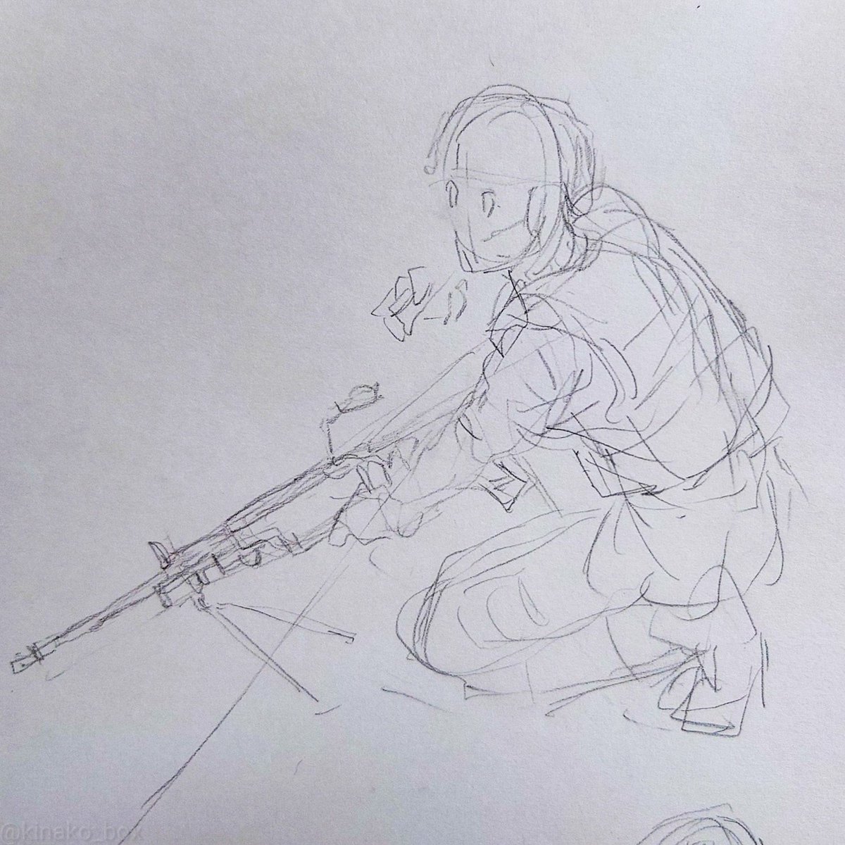 #今までで作画カロリーMAXの作品上げようぜ これですね🎨 自分で描いてみてわかったんですけど、こういったライフル類を描いてる絵師のみなさんがた、リサーチ力と観察力(あと体力)がすごいなあって…… 自分は毎回ヘロヘロになりますもん、でも楽しいからまたやっちゃう☺️