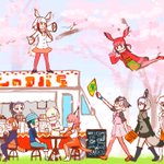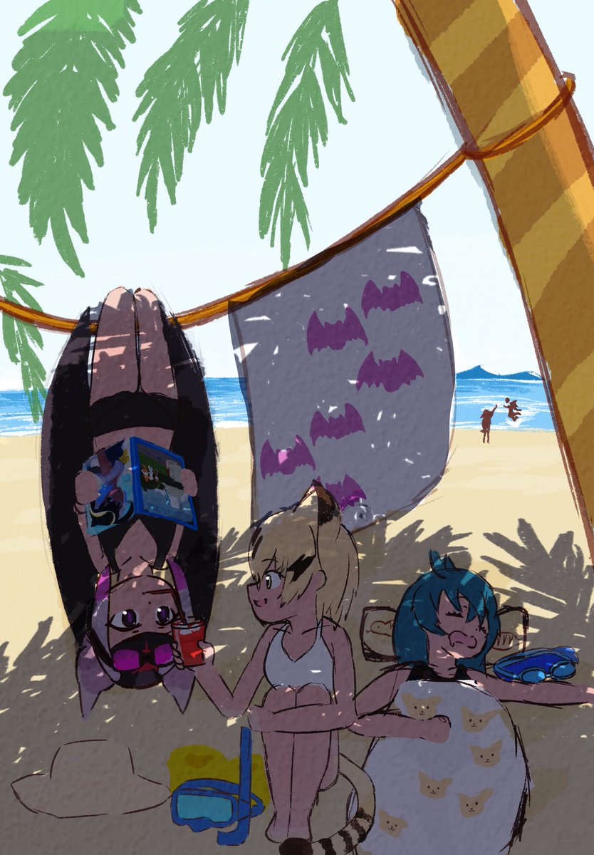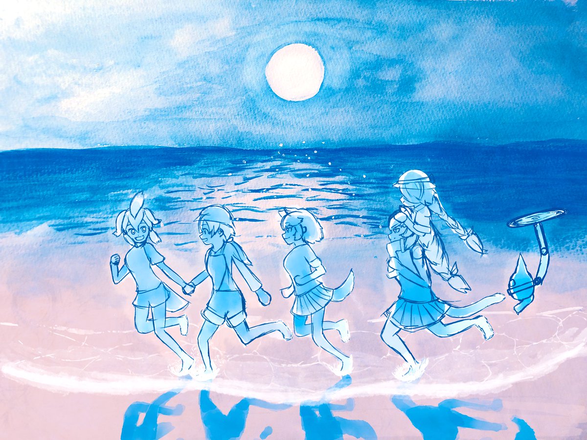 12 35 わいわい集合絵です #夏が終わりそうだし今年描いた水着絵を貼ろう #けものフレンズ 22/09/29 01:00