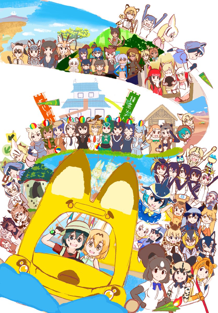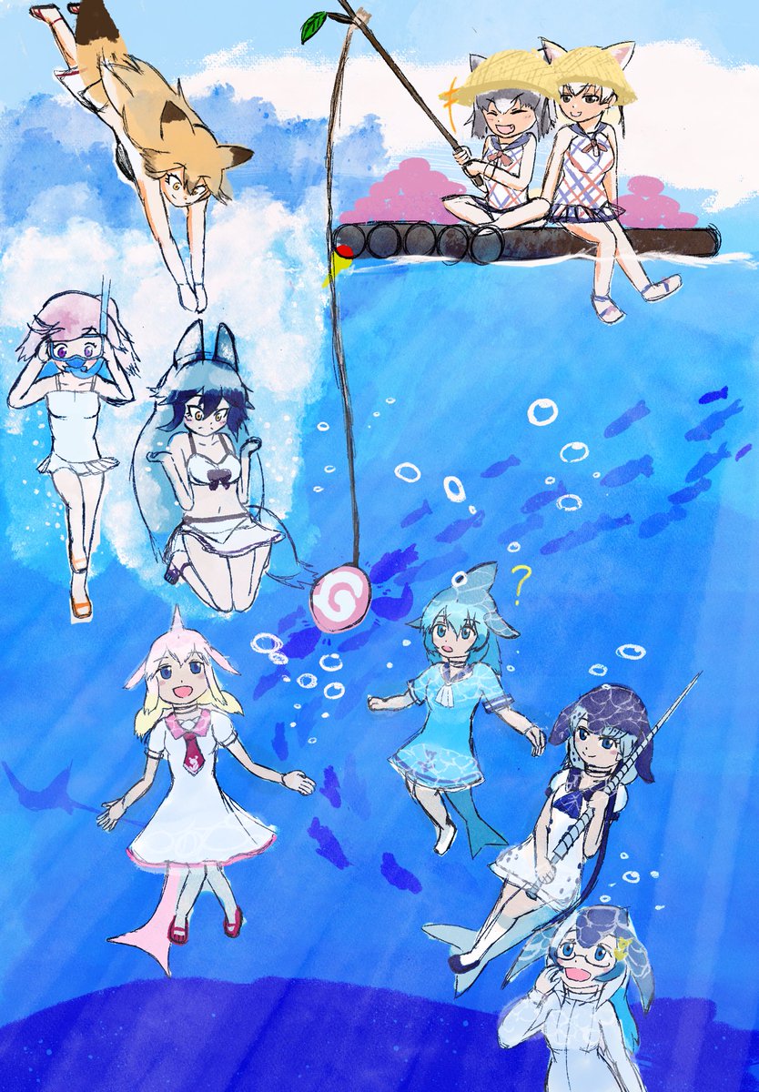 わいわい集合絵です #夏が終わりそうだし今年描いた水着絵を貼ろう #けものフレンズ