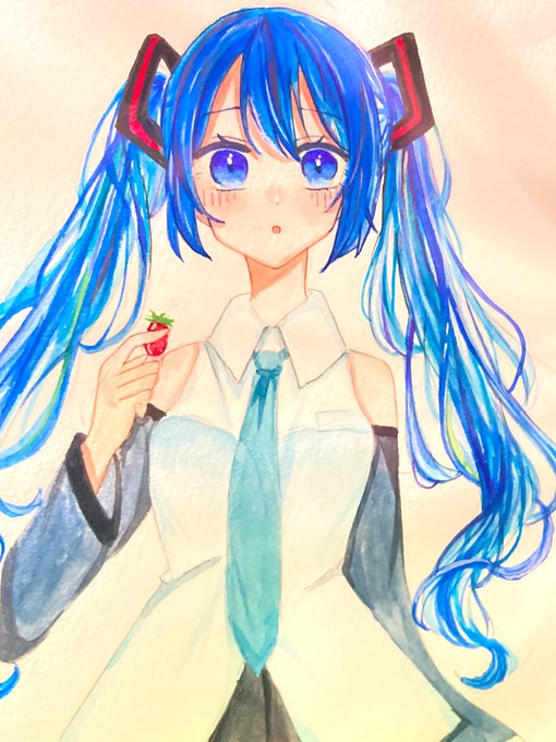 前に描いた初音ミクちゃん!✨️ 水彩はまだ下手だね… #初音ミク #イラスト