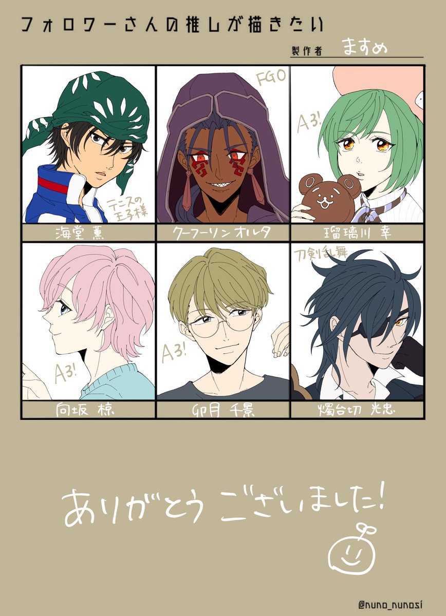 #フォロワーさんの推しが描きたい あんまり描かないキャラも描けて楽しかったです~~~^o^ ありがとうございました!