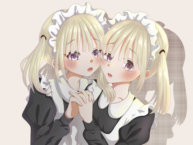 双子のメイド メイドは可愛くかけたけど、光の感じとか背景とか難しい😭 ぼかすからといって背景を荒く描きすぎた😇 #イラスト #絵かきさんと繋がりたい #メイド