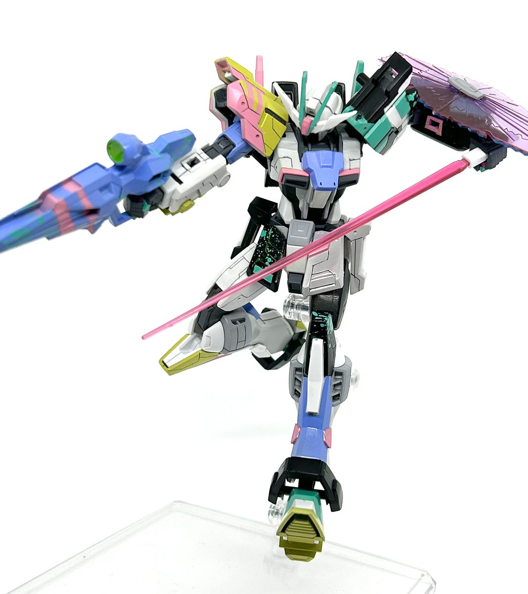 完成 ガンダムI'mパルス ビルドファイターズの世界観でDJの操るガンプラというイメージで制作しました! パンクでグラフィカルなカラーリングと模様を意識した塗装に挑戦しました‼️ それに合わせてビーム兵器の色もそれぞれ変えてよりカラフルにしています #オールガンダム #FTBC2023 #ガンプラ
