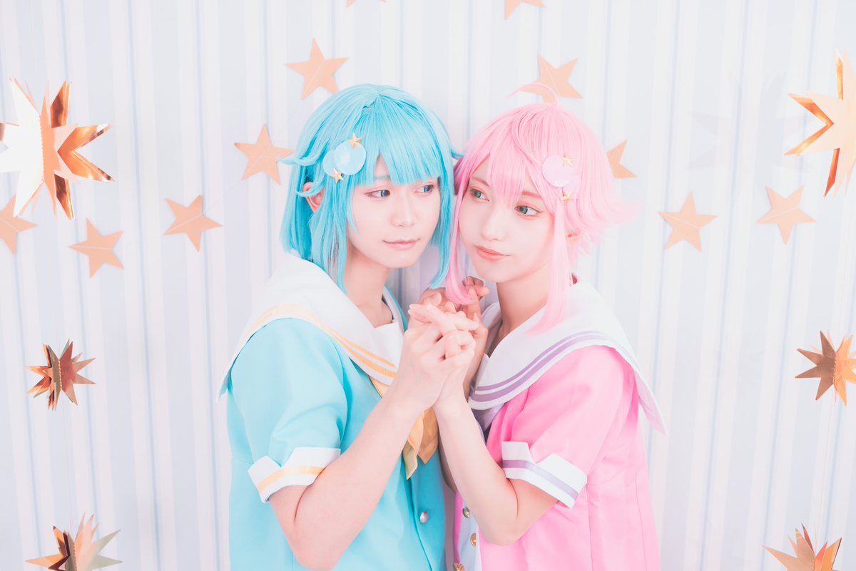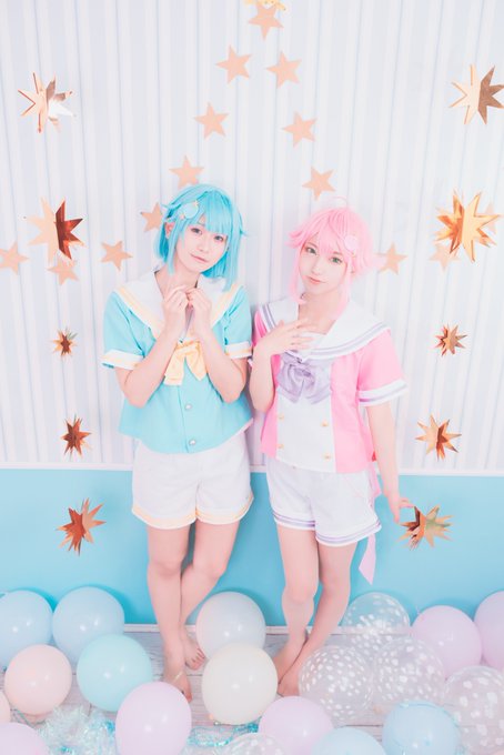 6 21 cos // ensemble stars! * 💗桃色のうたかた 🌺 空色のあぶく💜 ____________ model*みかみさん、うめづさん 22/07/25 22:46