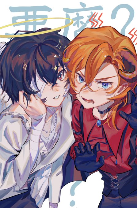 #太中 #BSD #文スト 悪魔?天使? 这张的颜色上了两遍…感觉效果不好 感觉dazai是那种装弱说着 僕、弱すぎ.jpg 实际超难搞的天使酱 chuuya是那种超凶的 ガオーガオー 叫着威胁你 如果再靠近一步就咬死你但实际上超好搞定的恶魔酱(除了被咬真的疼以外都很好搞定) (什么珈百璃的堕落…