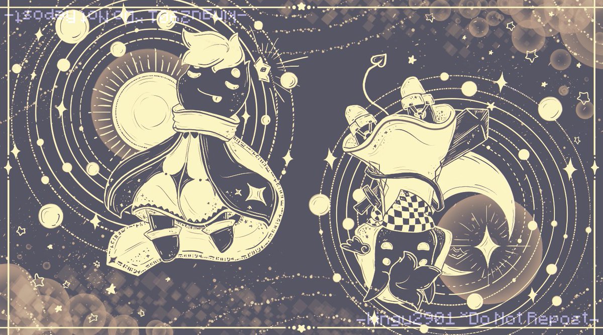 Miniature Adventures with Happyduo day 8! 🌙Sun and moon☀️ -Feel free to use as desktop bg ( ^ ^)7 #badboyhalofanart #badboyhalo #skeppyFanArt #skeppy #happytwt