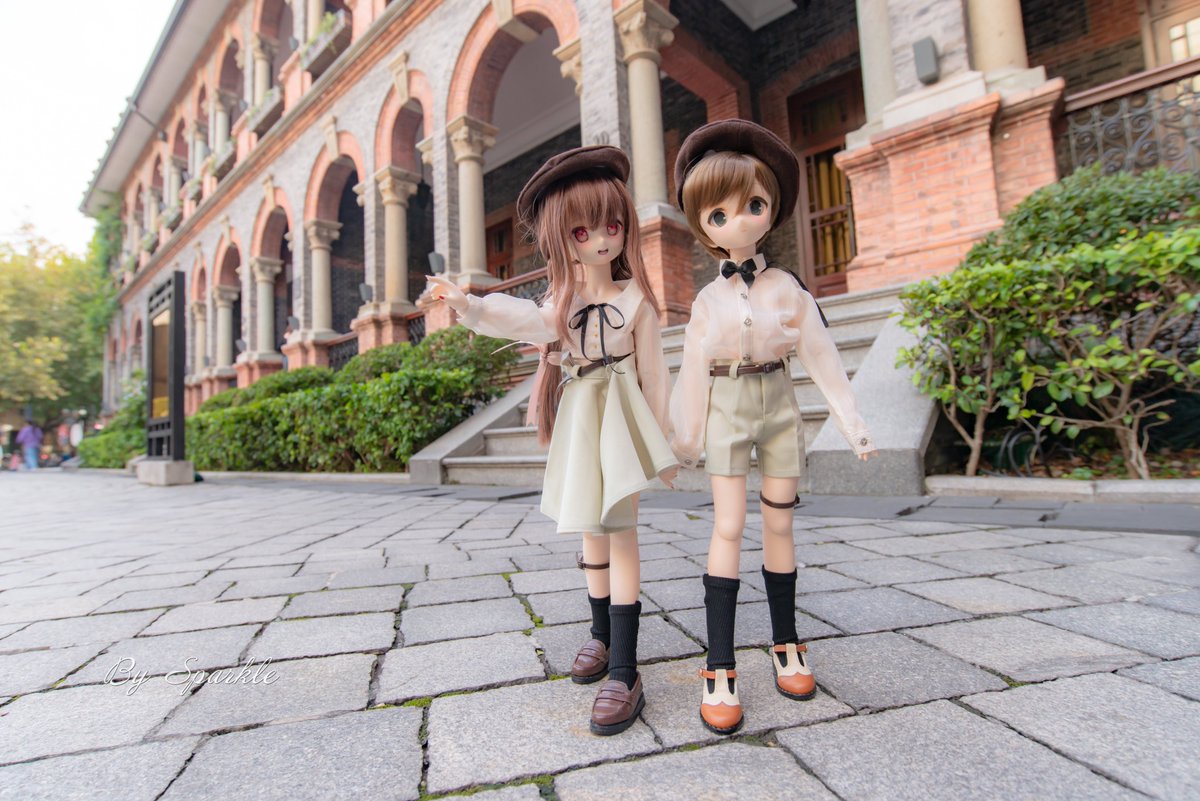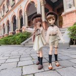 「はやくいくぞ!まえに何か面白いらしいよ!」 「待って、おねえちゃん!」 イリヤおねえちゃんとホウちゃん 同じのシーンと姿勢、超広角レンズと85mm画角レンズに撮った写真は全然違うね! #うちのこに癒され24時間 #うちのこかわいい #ドールオーナーさんと繋がりたい #MDDはいいぞ #dollfiedream