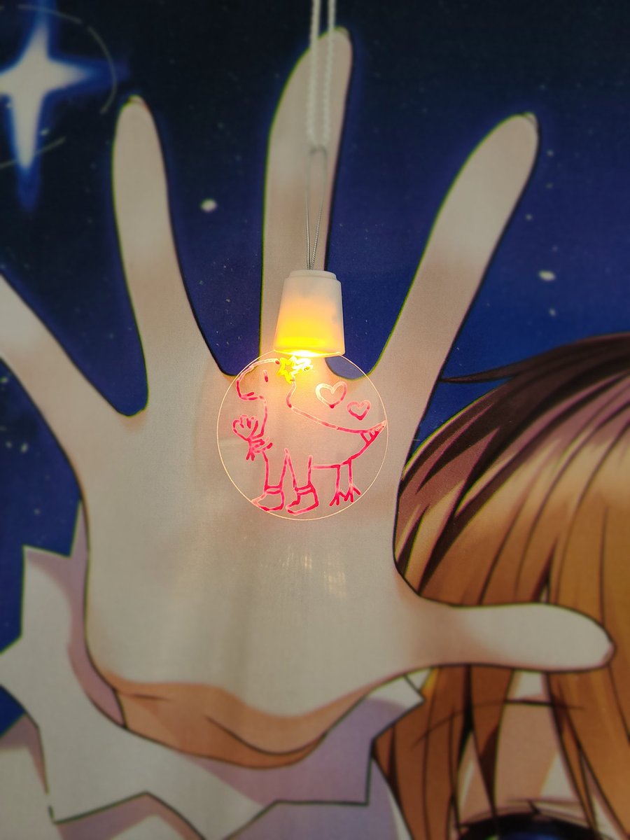 #soraArt そらちゃんの創作のヒントになればと思いアクリルアート作ってみました! 100均のアイテムにブラックボードマーカーで好きな絵を書くだけで光るアートができちゃいます(๑╹ᆺ╹)✨ 小さめなのでちょっとしたアクセサリーとして付けてみるのはいかがでしょうか✨