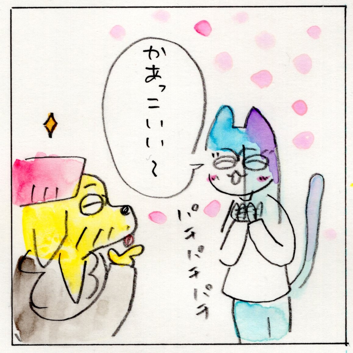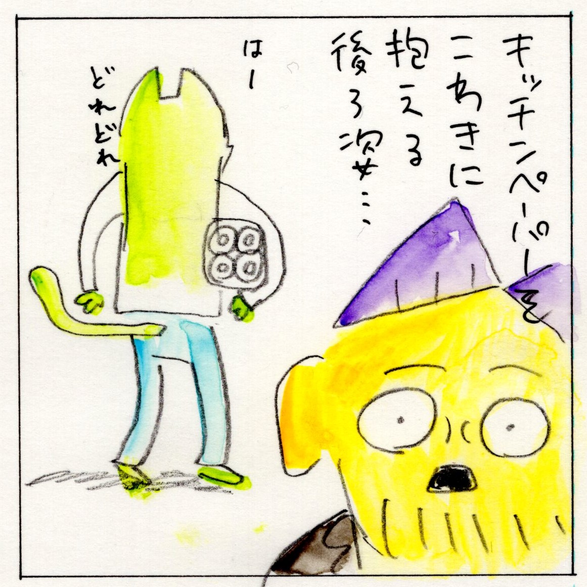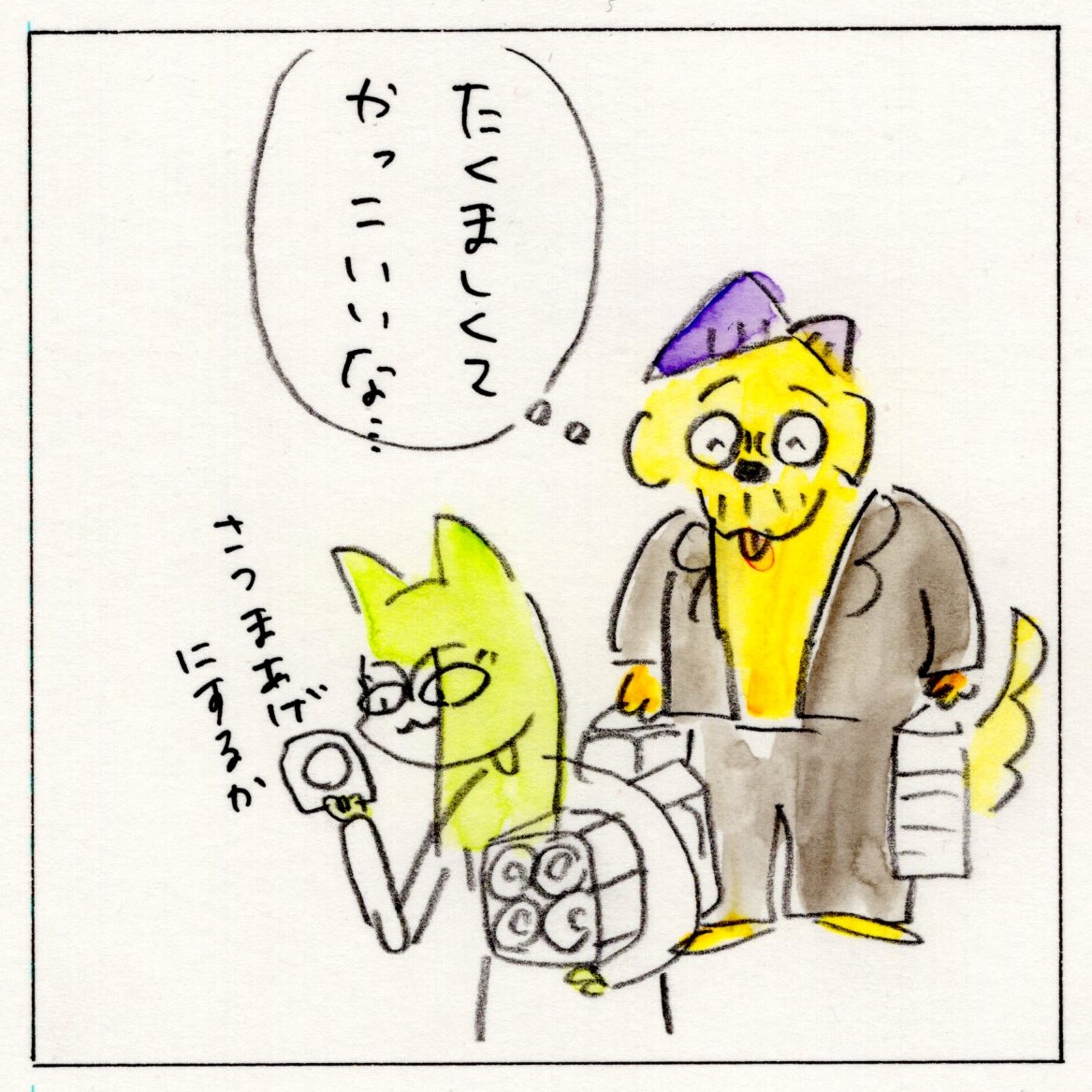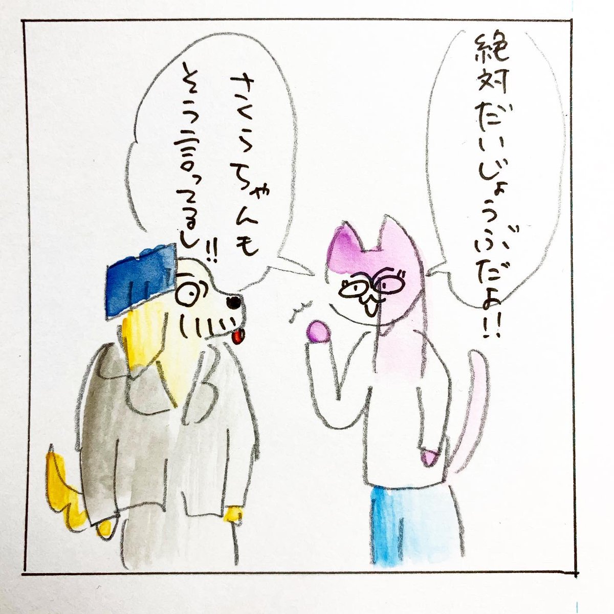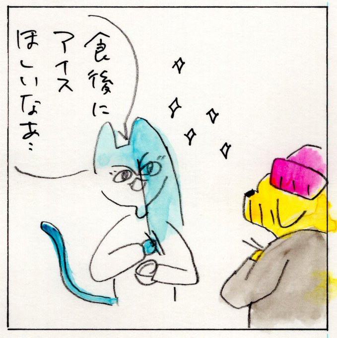 ジャイアントコーン食べたい #コミックエッセイ #夫婦 #artwork #comicessay #illustration #絵日記 #水彩画 #4コマ漫画 #いぬねこ毎日 #ライフハック #おまじない #ジャイアントコーン