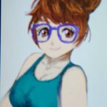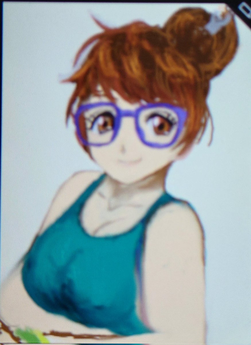 #え心 rkgk。ちょっと俯瞰から体をひねった感じに。胸〜おなか〜腰骨の理解が低い。おっぱおの陰はだいぶ慣れた💦袋にならないように谷間、下ち大事。脇、はみの処理💦目と眼鏡の空間把握。タンクトップもっとのびた感じに? 表情おすましから、あせった感じ?がいいか