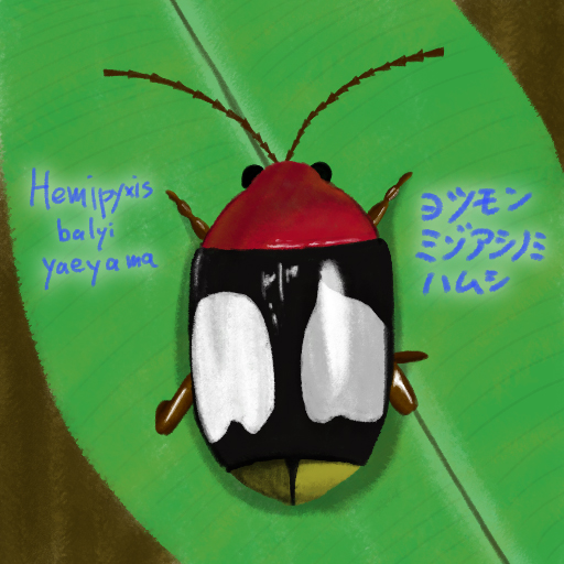 ヨツモンミゾアシノミハムシ 体長:4.2~5.2mm #イラスト #色鉛筆 #昆虫