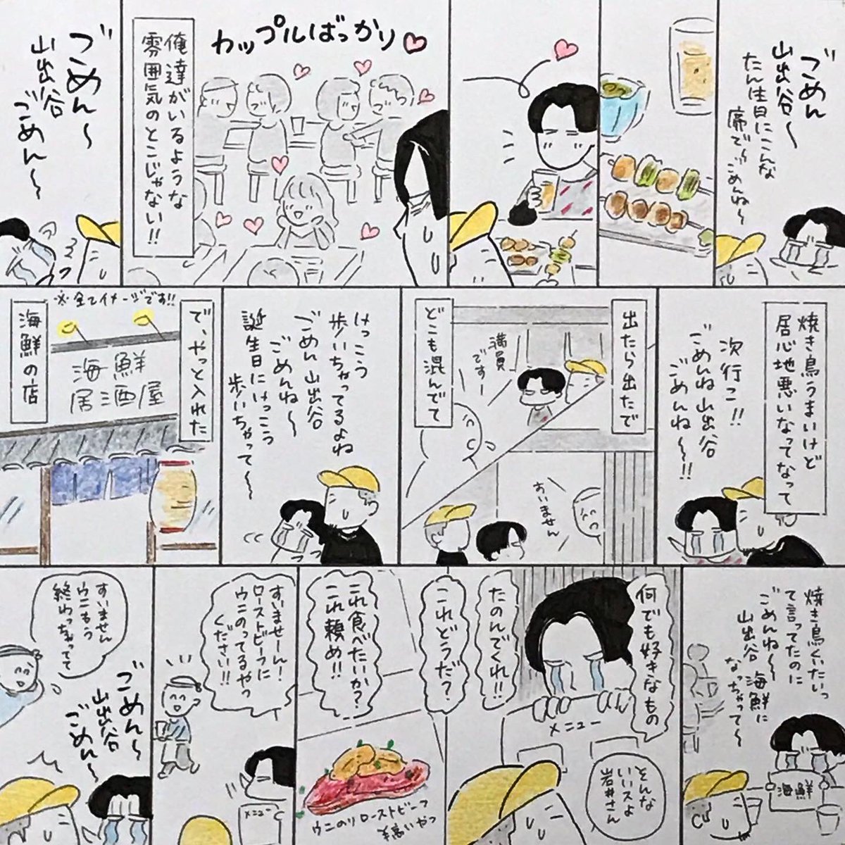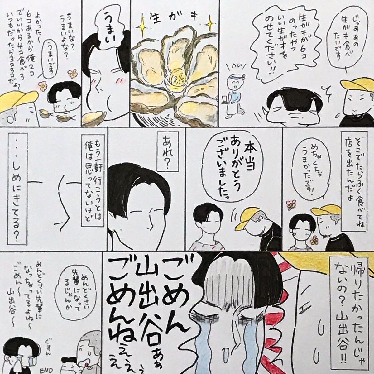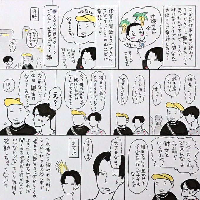 303回目のターンより〜 久しぶりに描きました〜よかったら見てください〜 岩井さんの「ごめん〜山出谷ごめんねぇぇ〜」が途中からもう中学生さんの声に聞こえてきてしまいました!(^O^) #ハライチのターン