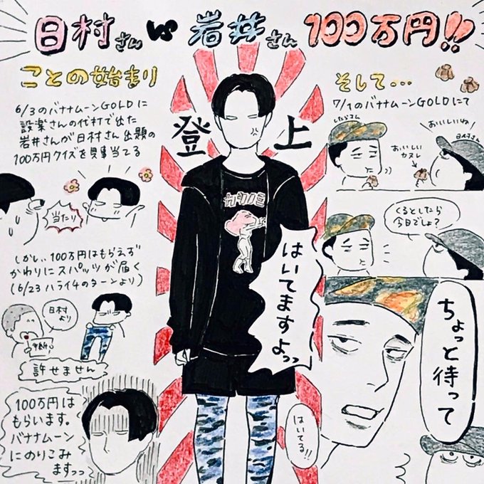 85 815 リクエストを頂いたので描きました!日村さん出題100万円クイズの話です。(見てるかな?) ♪全部いったん忘れてぇ〜 よかったら読んでくださーい! ちなみに今回は左から始まるマンガです。 #ハライチのターン #岩井勇気生誕祭 22/07/29 00:01
