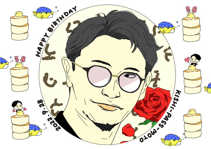 岸本さん!お誕生日おめでとうございます🎊🎂\( ˆoˆ )/🎂🎊 岸本さんの絵を描こうと岸本さんの顔を穴が開くほど見てたらやっぱり色気がすごいなぁと思いました。 ドカ食い気絶部、抜けられてよかったです! 配信ライブ楽しみにしています。 #都市ボーイズ #岸本誠