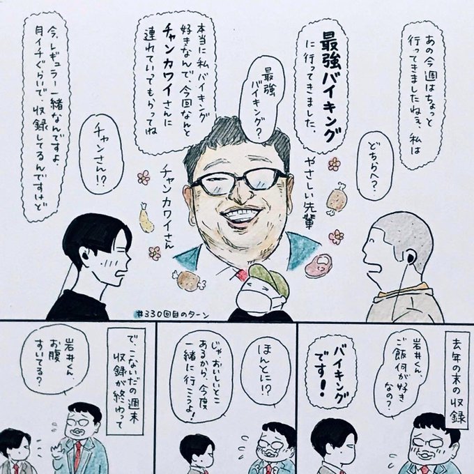 330回目のターンより 岩井さん「うめやあぁぁぁ〜」の話です。チャンカワイさん好きなので想像通りでうれしいです😊 バイキング気軽に行ける値段ではありませんがいつか、いつか行く🥩 書き忘れましたが※全てイメージです! #ハライチのターン #ハライチ