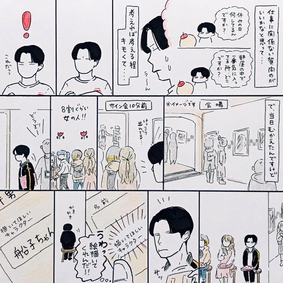 345回目のターンより〜 私も好きなマンガ家さんのサイン会に行ったんですが、緊張しすぎて1人で勝手にベラベラ喋ってしまいました…苦い思い出です😭 でも目の前で好きなキャラクターを描いてもらえて大感動でした〜!! サイン会での会話は難しいです… #ハライチのターン #ハライチ