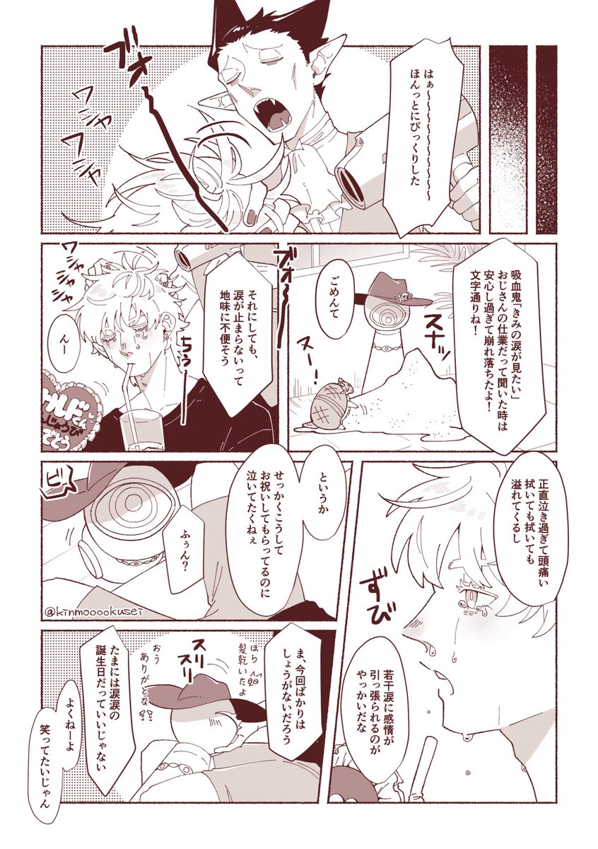 稚魚アンソロ寄稿 Web再録(3/3) お誘いしていただいた主催者様、ありがとうございました! 通販残りわずかだそうなので、アンソロゲットしたい方お早めにどうぞ…! ▼通販ページ▼ 【再販】ちぎょのとおりみち( ちぎょようちえん 467 )ecs.toranoana.jp/joshi/ec/item/… ▼Twitter▼ @cigyo_antholo