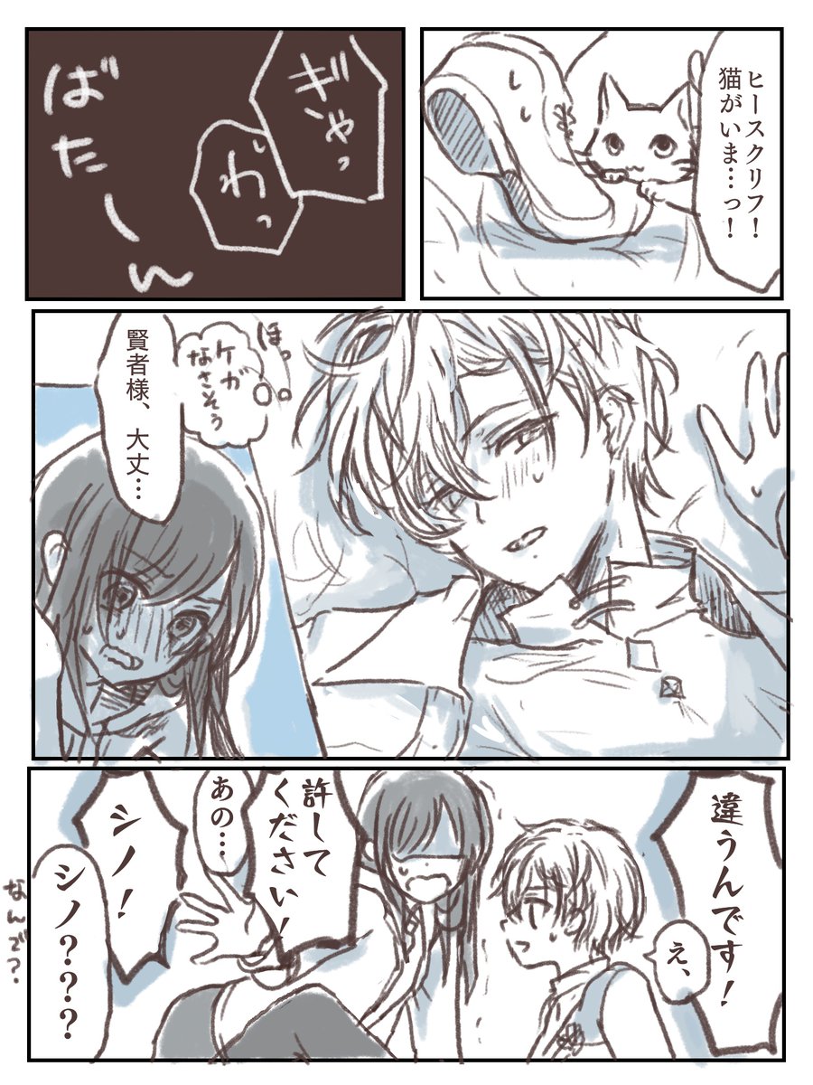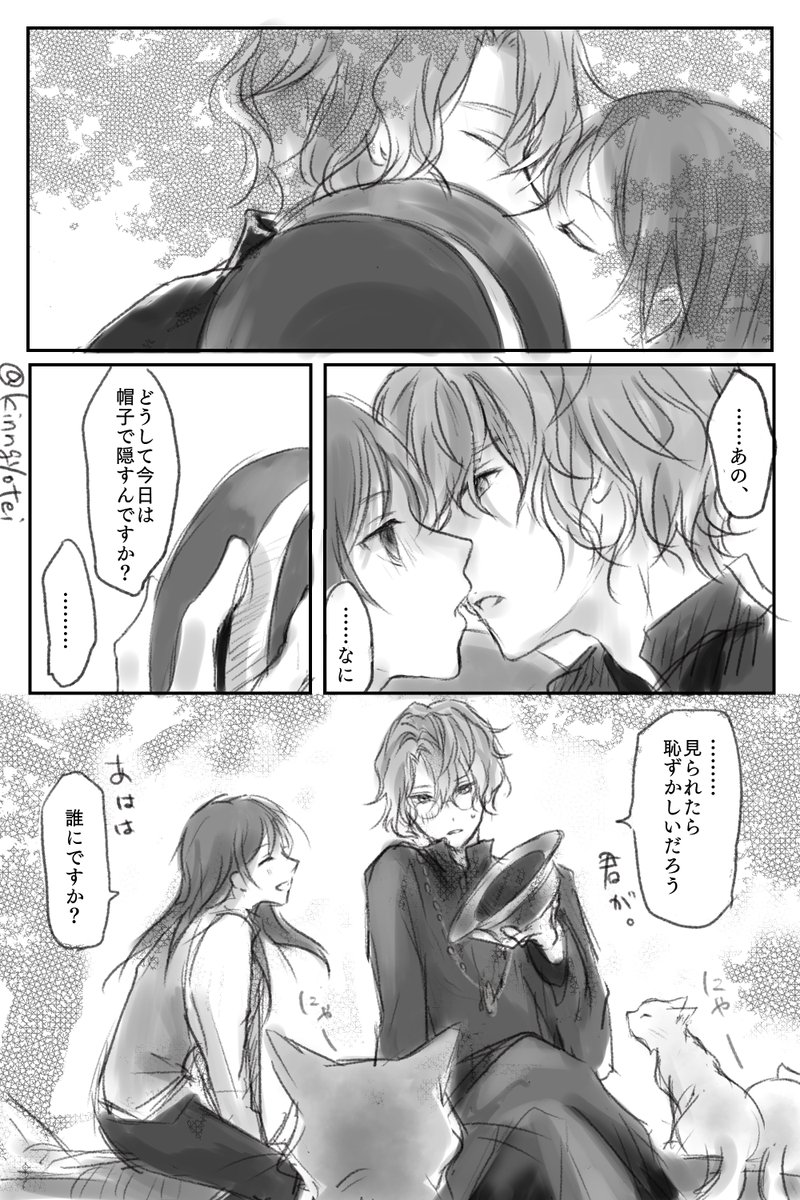 リク⑤ファウ晶♀️ 新年描き始めだ! (ちなみに初夢は参謀してる軍パロのフィ晶でした) ファウストの外套脱いでる状態が好きで描きました この衣装の時は帽子かぶらないと思うけど、隠すために出したという事で… #ちゅーしてるとこだけ描く #まほやく男女CP