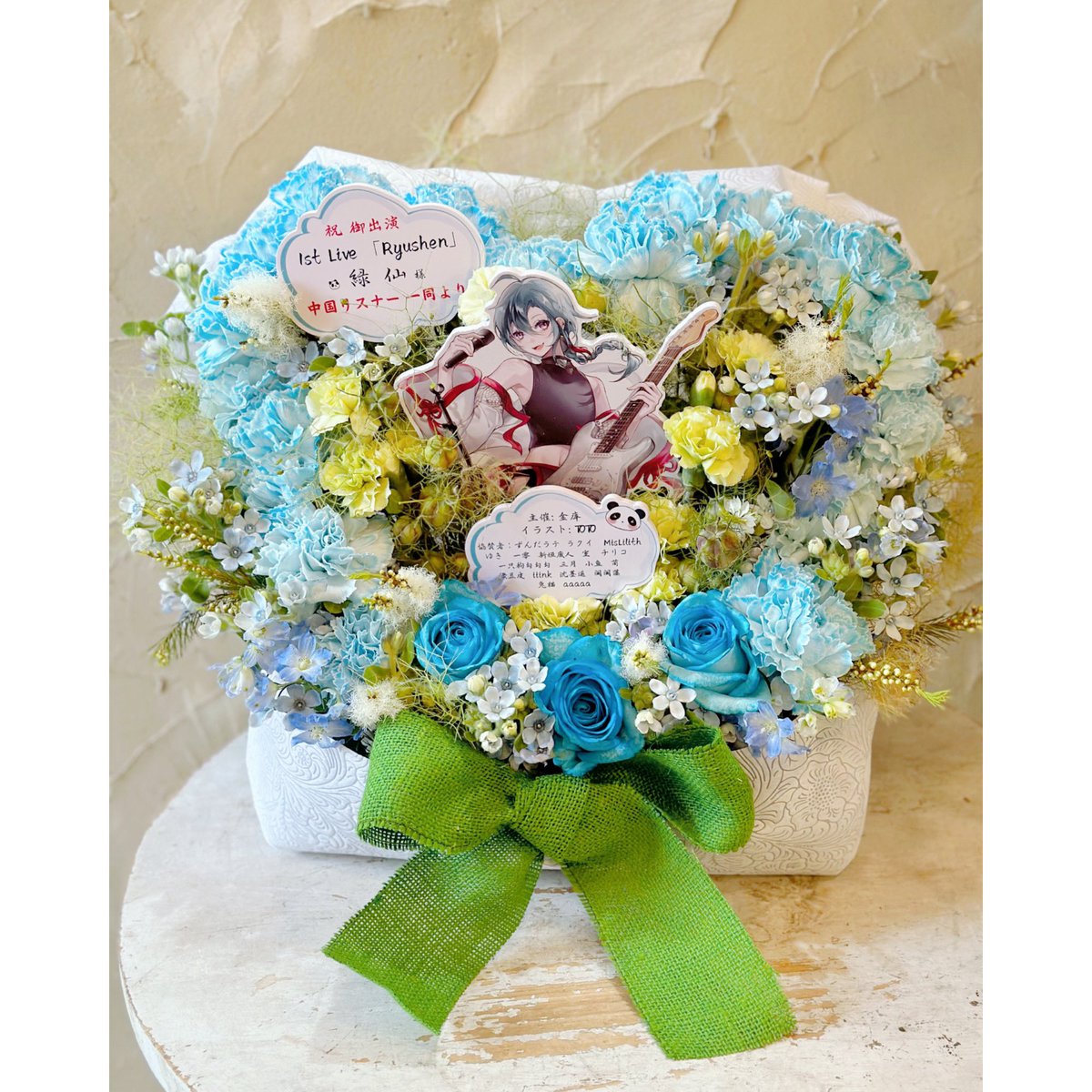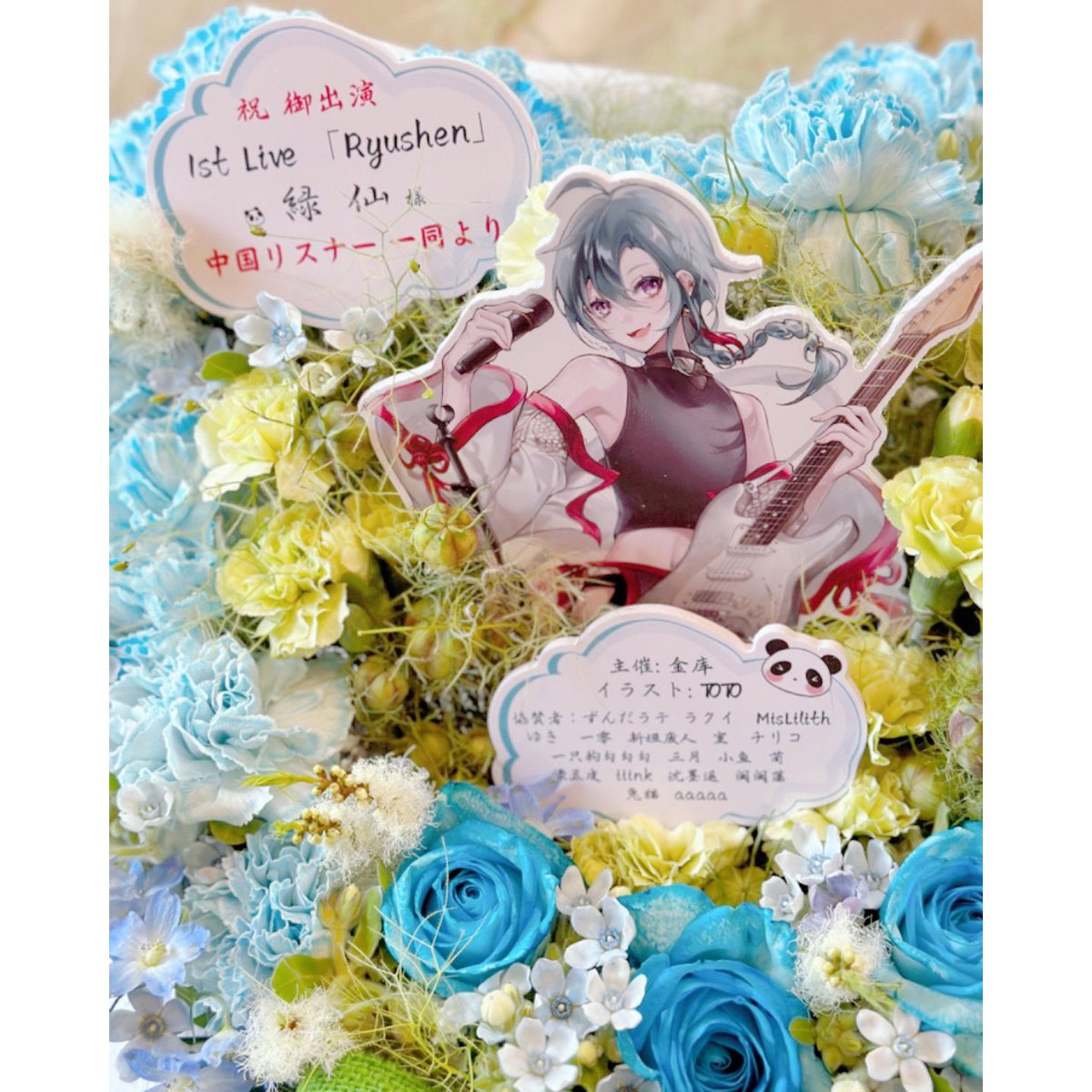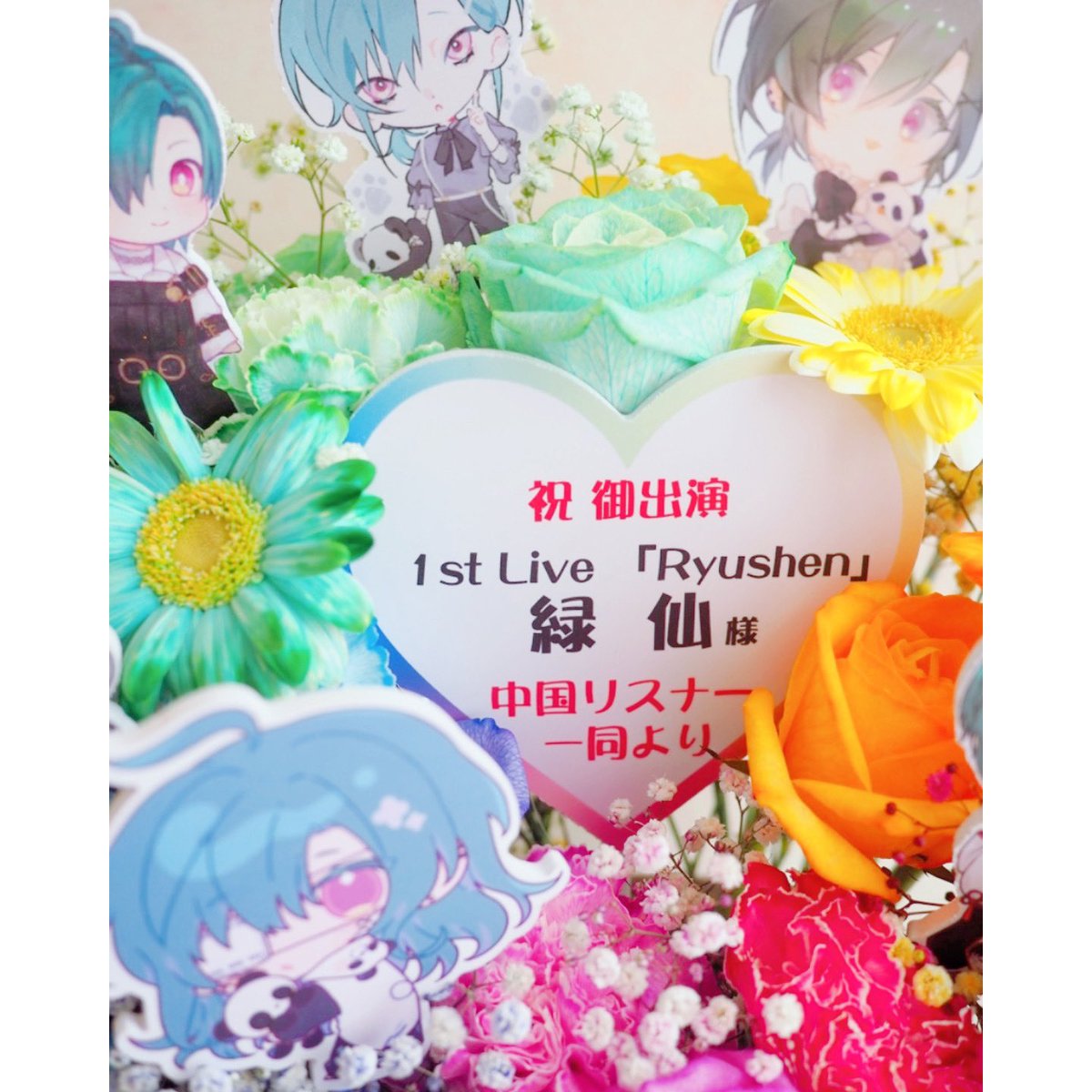 🇨🇳中国リスナー達一緒に 1st LIVE「Ryushen」 ご出演の緑仙さんへお花を贈らせて頂きました🐼💚 1つ目の花はライブキービジュの青空をイメージして制作され、イラストはTOTO先生(@howlin4043 )担当💭 初ワンマンおめでとうございます🎉 #緑仙はやく見ろ #緑仙のライブ