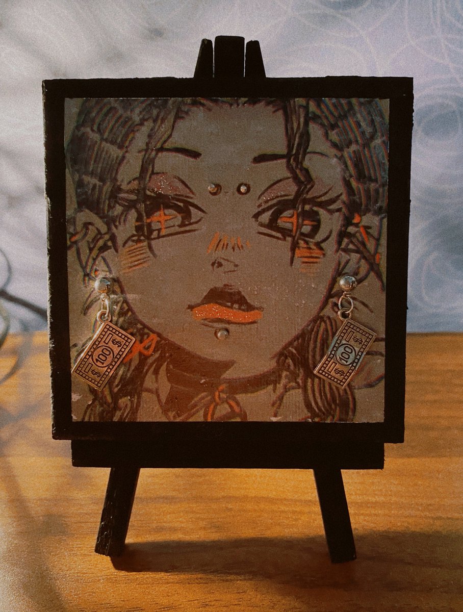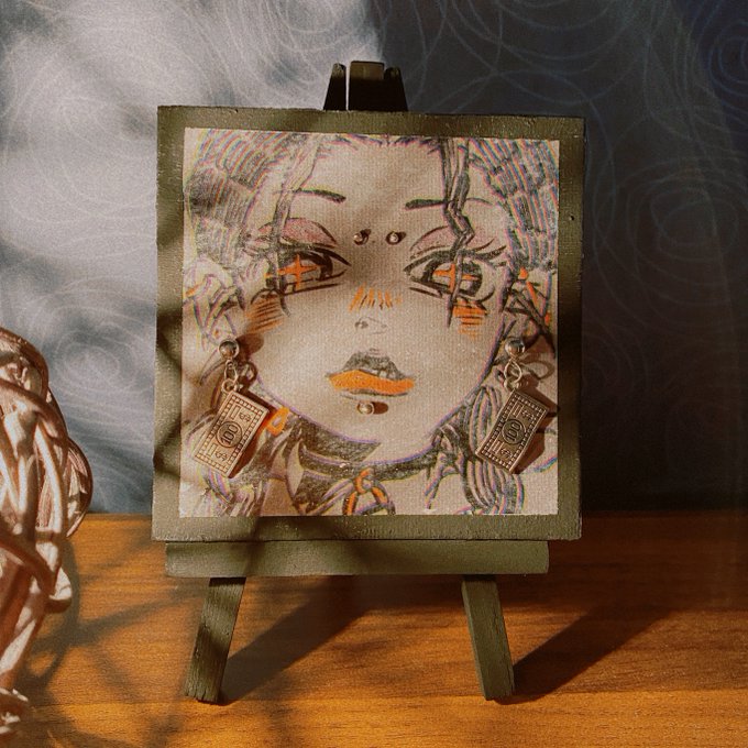 #作品を載せて自分の作品を知ってもらおう #冬の創作クラスタフォロー祭り 新しい作品のキャンバスピアススタンドです。 絵の子に似合うピアスを着せ替え感覚で差し替えたり、絵とピアスどちらも飾って楽しんでもらいたいです。 これは失敗作のプロトタイプなのでこれから試作を重ねます。