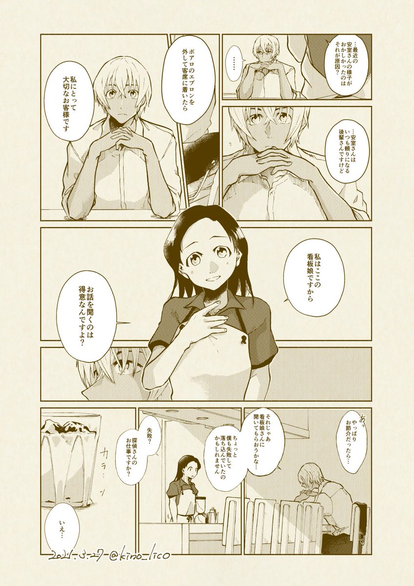 あむあず。以前いただいたリハビリお題の「カウンター内で同じタイミングで屈んじゃって距離が近くて意識しちゃうあむあず」。ありがとうございました~!