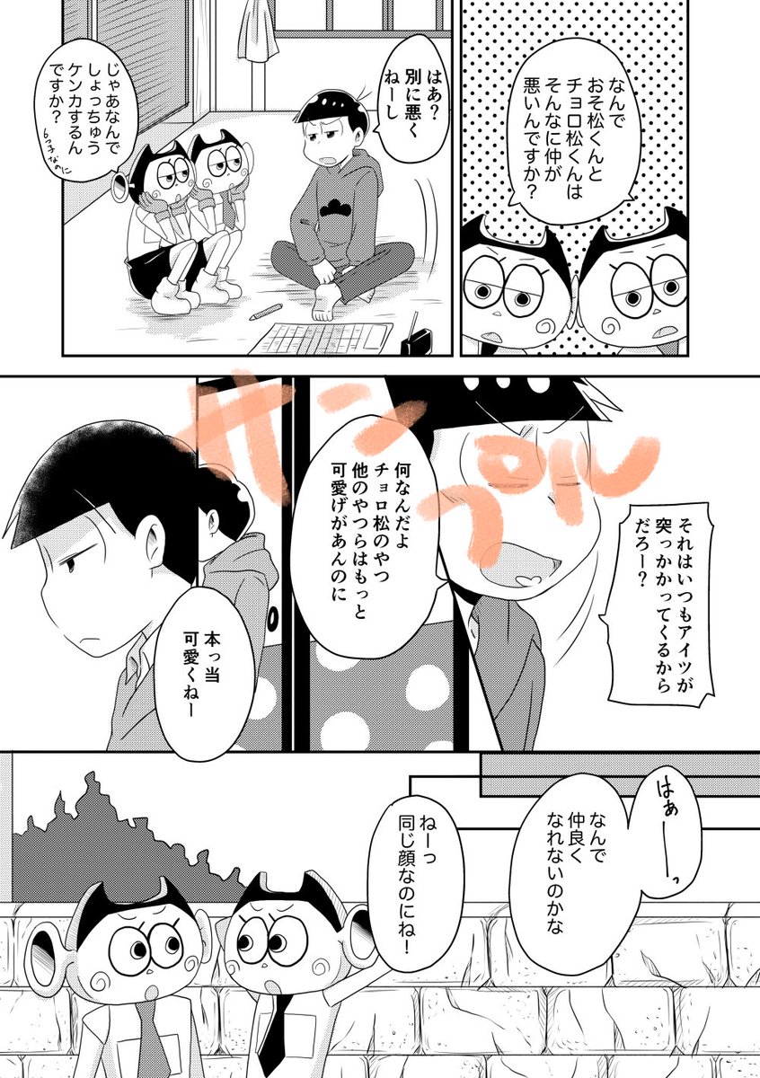 1/9家宝新刊サンプルです!オムスビがおそチョロのために頑張る話。 アンケートも参加いただけると嬉しいです。 支部にもっと長いサンプルあります。