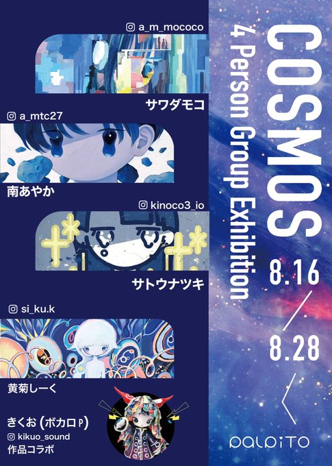 【お知らせ】 本日より東京にてグループ展が始まりました。 4 Person Group Exhibition 「COSMOS」 2023年8月16日(水)-8月28日(月) 10:30-18:00(12:30-13:00は一時閉廊) 火曜 休廊 📍Palpito Gallery(東京 銀座) 是非、よろしくお願いいたします! palpito.co.jp/cosmos