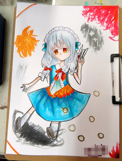 ひさびさのみーちゃんちーちゃん! 十六夜咲夜を描きました!!!!! #これでも小3です ←みーちゃん指定のハッシュタグです笑 #コピック