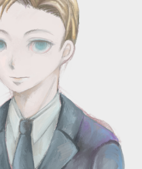 今描いている絵の途中経過。スクショだから粗い。執事さんを描いているのだが、スーツの色を黒っぽくしたいけど黒をいきなり使用するのに未だに抵抗がある。 #絵 #イラスト