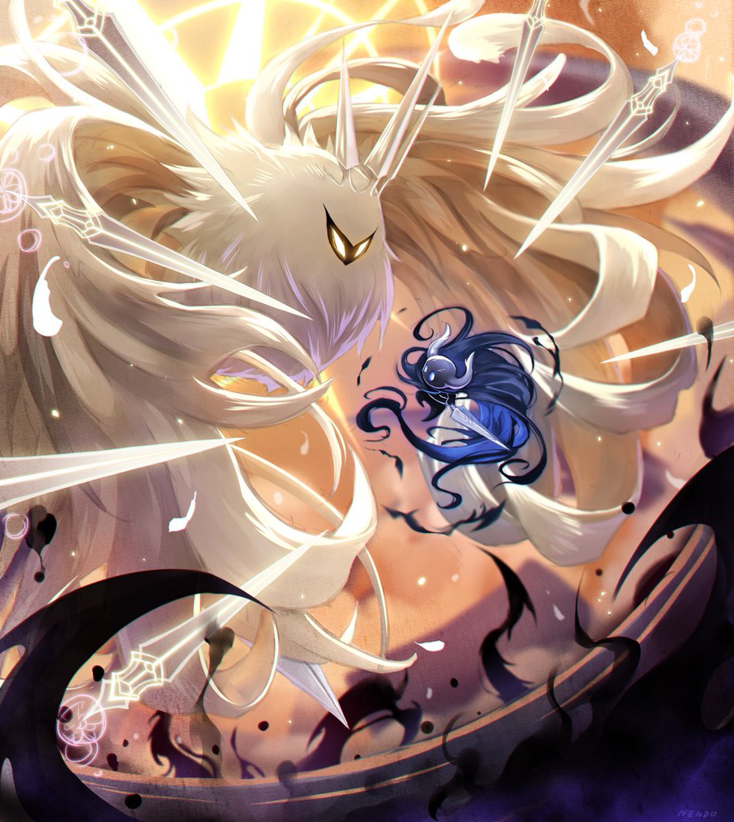 ラディアンスが姿を変えてたま〜に下界に遊びにきていたら……を妄想。ウィルムが出てきてからは段々降りる頻度も少なくなっていったのかなぁとか、偶然逢ってたりしないかなとか色々。 #hollowknight #hollowknightfanart #hollowknightart