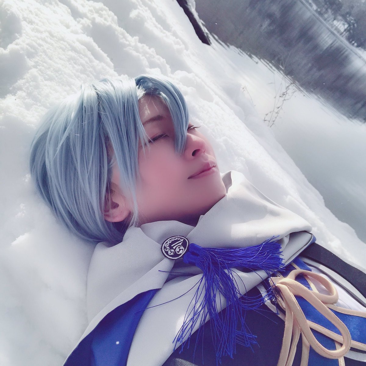 【cos】 #2月18日は山姥切長義重文記念日 #2月18日は山姥切長義旧国宝指定日 いつかやりたいと思ってたちょぎ、やっと出せて嬉しかった❄ 山姥切長義:きのこ 📸:RIN0さん(@rino_lt ) ロケ地:木崎湖キャンプ場(@kizakiko_camp )さま