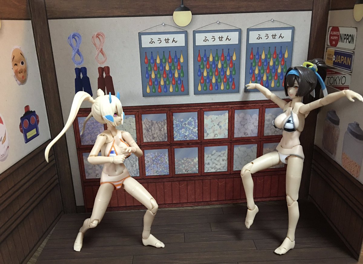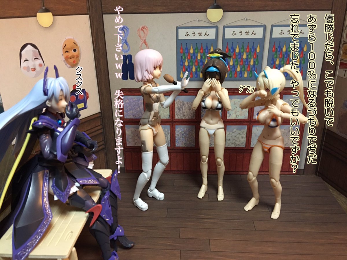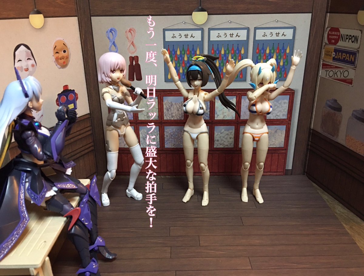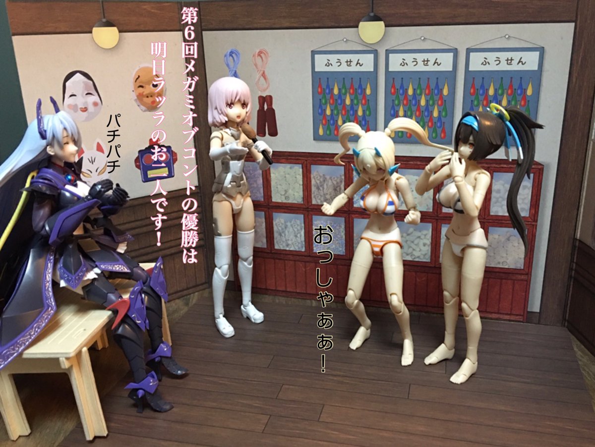 商店街主催『メガミオブコント』で朱羅ユニット【明日ラッラ】が優勝しました。 出オチだの何だのと辛酸をなめ、苦節を経て得た栄光に号泣する2人には惜しみ無い拍手が送られました。 #メガミ4周年選手権 #メガミデバイス #4Bコース完成