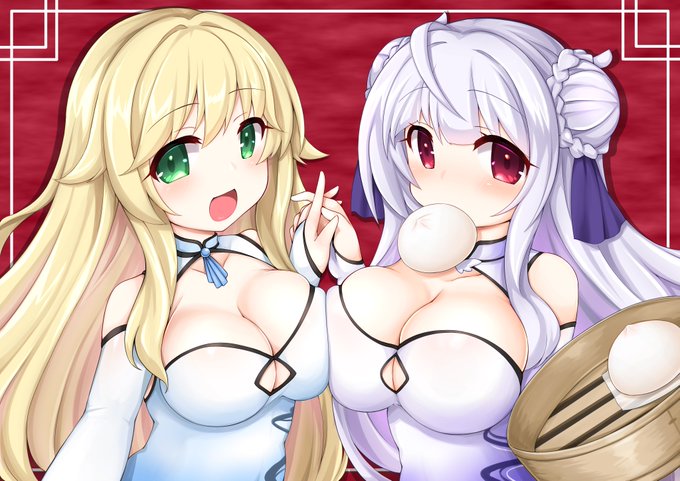 Skebにてリクエスト頂きました、チャイナ服シグニットちゃんとオーロラちゃんです ありがとうございました! #アズールレーン