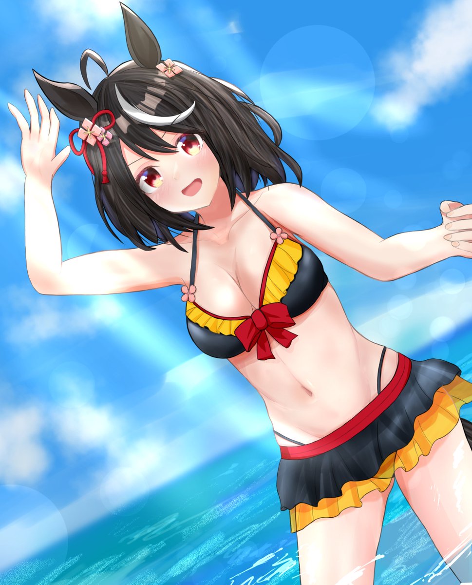 #今月描いた絵を晒そう #ウマ娘 この2枚です 初水着絵にチャレンジしました☘️ 時間かかったけど課題が多いです