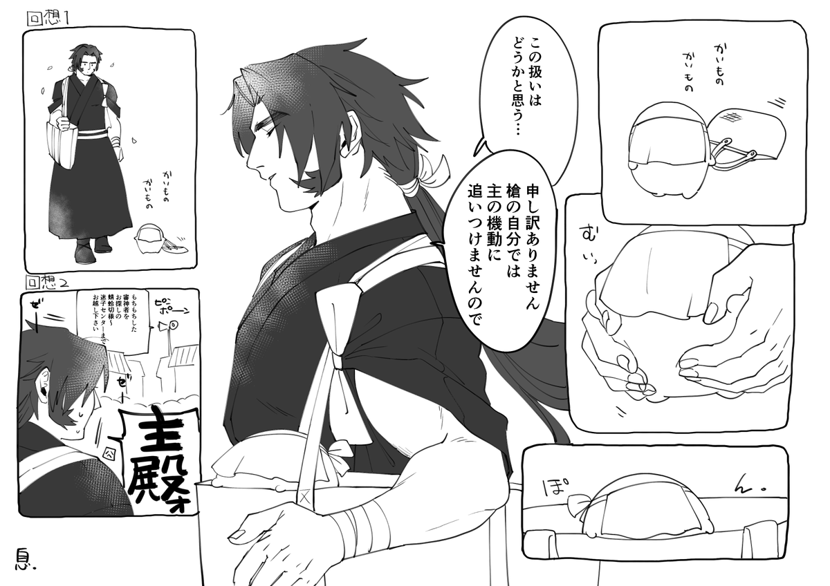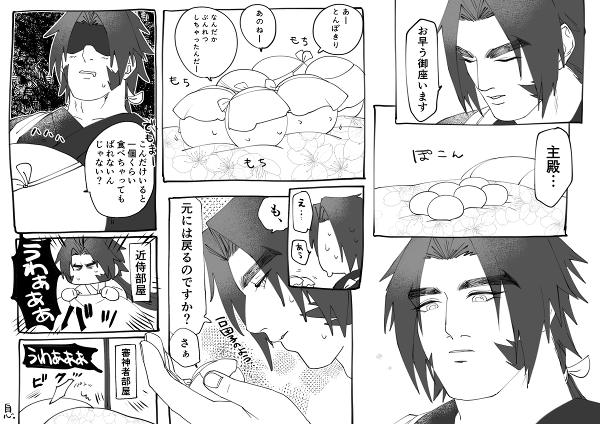 49 220 これはなんか太古の昔描いたけど多分アカウントどっか行ったからもうこの世のどこにあるかわからないから再投稿するとうけんらんぶくんの蜻蛉切ともち審神者の絵 22/04/03 16:26