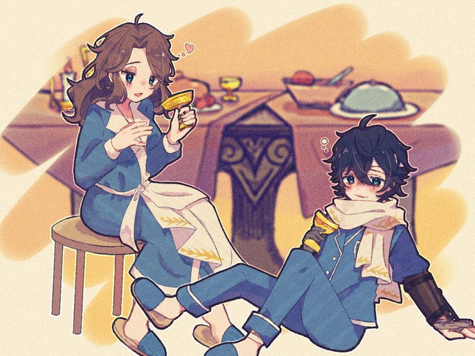 ミルエダちゃんお揃い衣装と酔い潰れエミくんありがとうございます✨💞 #第五人格イラスト