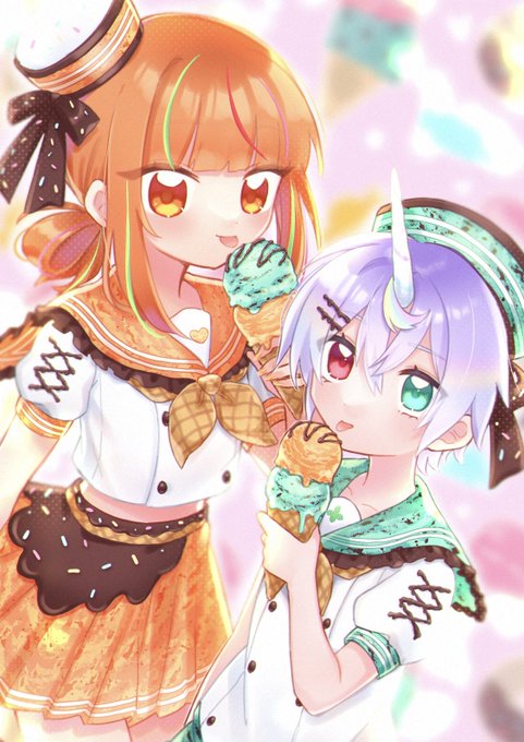 3 8 🍨🧡💚 #イラスト 23/06/08 16:27
