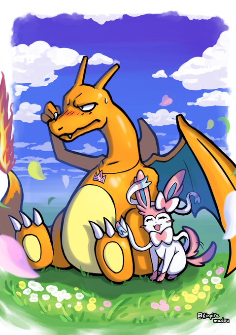最強リザードンとニンフィア #ポケモンイラスト #Pokemon