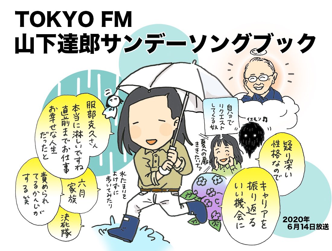 本日のサンソンは雨の歌を中心に🎤個人的に『SONORITE』が大好きなので「FOREVER MINE」がおうちカラオケで聴けるとは…じっくり味わいました✨服部さんに感謝とご冥福を心より。#sundaysongbook #イラスト