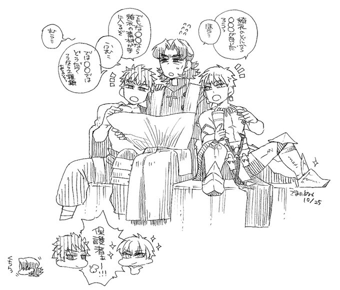 17 81 ちょい前に呟いてたネタのちょい前に描いた落書き出て来たので供養✨愛され峰😌✨ (爺ちゃんと金ピカはガチ保護者ネタ) 20/10/29 20:48